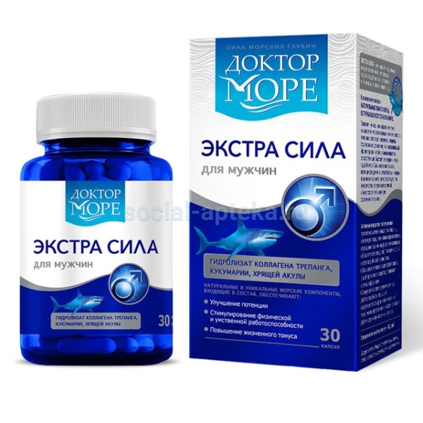 Экстра Сила - уникальный натуральный концентрированный комплекс из морских гидробионтов - трепанга и кукумарии, а также хрящей акулы.Трепанг – уникальное морское животное называемое «морским женьшенем» с множеством полезных свойств для организма человека. Исследования установили, что омолаживающий эффект проявляют биоактивные вещества, способствующие быстрой регенерации клеток гидробионтов. Сила и неутомимость акул, являющихся одними из самых быстрых и мощных хищников на планете, не перестает удивлять человечество вот уже много столетий и будет совсем не лишней для современного мужчины.Активные вещества голотуриевых: ритерпеновые гликозиды, простагландины, нейромодуляторы, полиеновые жирные кислоты, стероидные соединения, фосфо- и гликолипиды обладают противовирусной, противомикробной и противогрибковой активностью. Оказывают омолаживающий эффект, даже у людей преклонного возраста, продлевают активную фазу жизни. Стимулируют физическую и умственную работоспособность, повышают сопротивляемость организма и жизненный тонус, усиливают потенцию и восстанавливают работу всех жизненно важных органов.Компоненты, входящие в состав обеспечивают:
