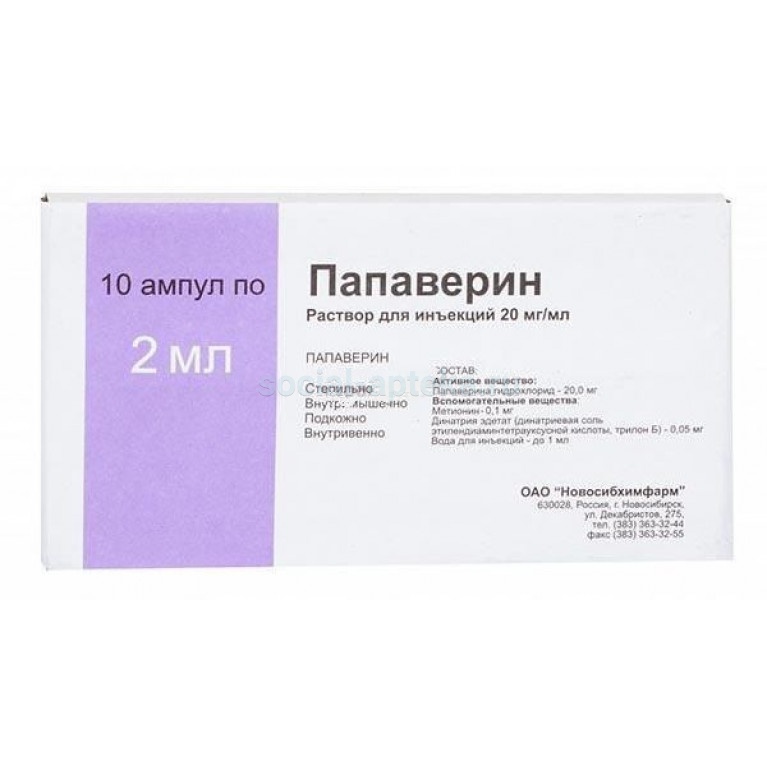 Папаверин снижает тонус гладких мышц и оказывает в связи с этим сосудорасширяющее, спазмолитическое и гипотензивное действие. Является ингибитором фермента фосфодиэстеразы и вызывает внутриклеточное накопление цАМФ и понижение уровня ионов кальция, что приводит к нарушению сократимости гладких мышц и их расслаблению при спастических состояниях. Действие папаверина на ЦНС выражено слабо, лишь в больших дозах он оказывает некоторый седативный эффект. В больших дозах снижает возбудимость сердечной мышцы и замедляет внутрисердечную проводимость.