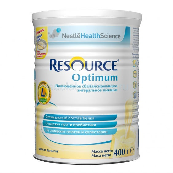 Resource® Optimum можно применять в виде напитка, или добавлять в приготовленную пищу (супы, кашу), готовить коктейли. Resource® Optimum не содержит глютен. Под наблюдением врача Resource® Optimum может использоваться в качестве единственного источника пищи