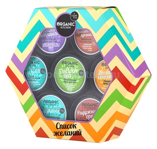 Попробуйте чудесный набор Список желаний Organic Kitchen by Organic Shop. Внесите в свою жизнь новые, яркие краски, вместе с эксклюзивным набором натуральных косметических средств, которые подарят неповторимую силу и красоту Вашим волосам, а коже гладкость и сияние.В состав набора косметики Список желаний Organic Kitchen by Organic Shop входит: