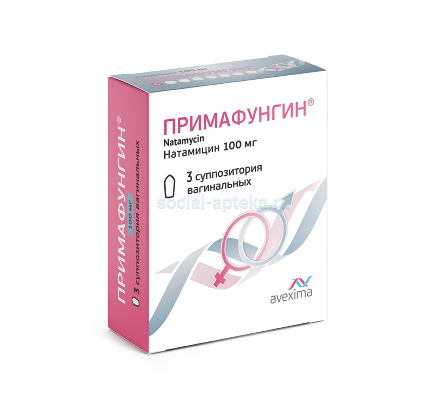 Примафунгин - противогрибковый полиеновый антибиотик из группы макролидов, имеющий широкий спектр действия. Оказывает фунгицидное действие. Натамицин связывает стеролы клеточных мембран, нарушая их целостность и функции, что приводит к гибели микроорганизмов. Активен в отношении большинства патогенных дрожжеподобных грибов (особенно Candida albicans), дерматофитов (Trichophyton, Microsporum, Epidermophyton), дрожжей (Torulopsis, Rhodotorula), других патогенных грибов (Aspergillus, Penicillium, Fusarium, Cephalosporium), а также в отношении некоторых простейших (трихомонад). Не влияет на грамположительные и грамотрицательные бактерии.Резистентность к натамицину в клинической практике не встречается. ФармакокинетикаНе оказывает системного действия, т.к. практически не всасывается с поверхности слизистых оболочек. Вагинальные суппозитории под действием температуры тела расплавляются, образуя объемно распространяющуюся пенистую массу, что способствует равномерному распределению активной субстанции по слизистой оболочке.