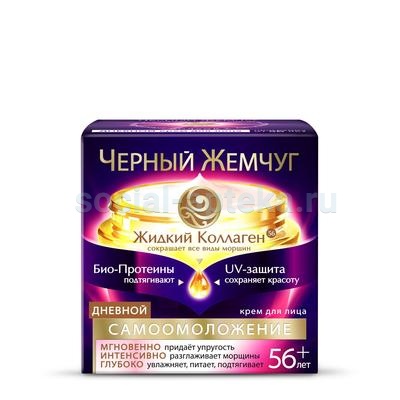Дневной крем для лица ЧЕРНЫЙ ЖЕМЧУГ cтарше 56 лет – крем для борьбы с возрастными изменениями, учитывающий потребности кожи женщин старше 56 лет. Это первый дневной крем, создающий идеальные условия в коже для самовыработки собственных омолаживающих веществ. Плотная текстура крема легко распределяется по коже, питая и защищая кожу. Кожа становится более плотная, мгновенно - более упругая и эластичная. Контуры лица подтягиваются, даже глубокие морщины становятся менее заметными.Этот дневной крем подходит также для области шеи и декольте.