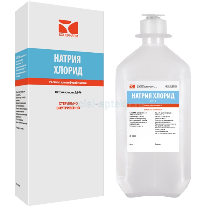 Плазмозамещающее средство. Оказывает дезинтоксикационное и регидратирующее действие. Восполняет дефицит натрия при различных патологических состояниях организма. 0,9 % раствор натрия хлорида изотоничен плазме человека, поэтому быстро выводится из сосудистого русла, лишь временно увеличивает объем жидкости, циркулирующей в сосудах.