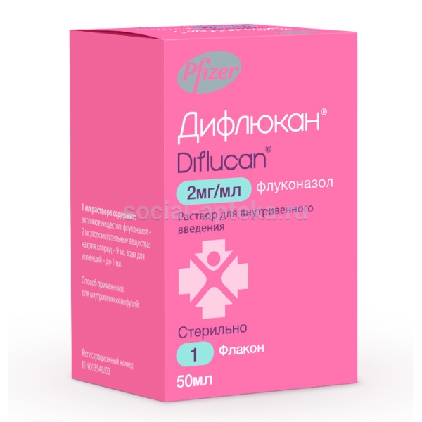 Раствор для в/в введения прозрачный, бесцветный. 1 мл раствора содержит: Действующие вещества: флуконазол 2 мг. Вспомогательные вещества: натрия хлорид - 9 мг, вода д/и - до 1 мл. Во флаконе бесцветного стекла 50, 100 или 200 мл раствора. В картонной упаковке 1 флакон.