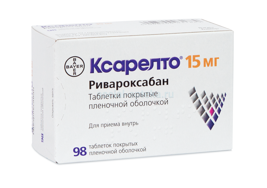 Формы выпуска Ксарелто таб п/пл/о 15мг N98 (Байер)