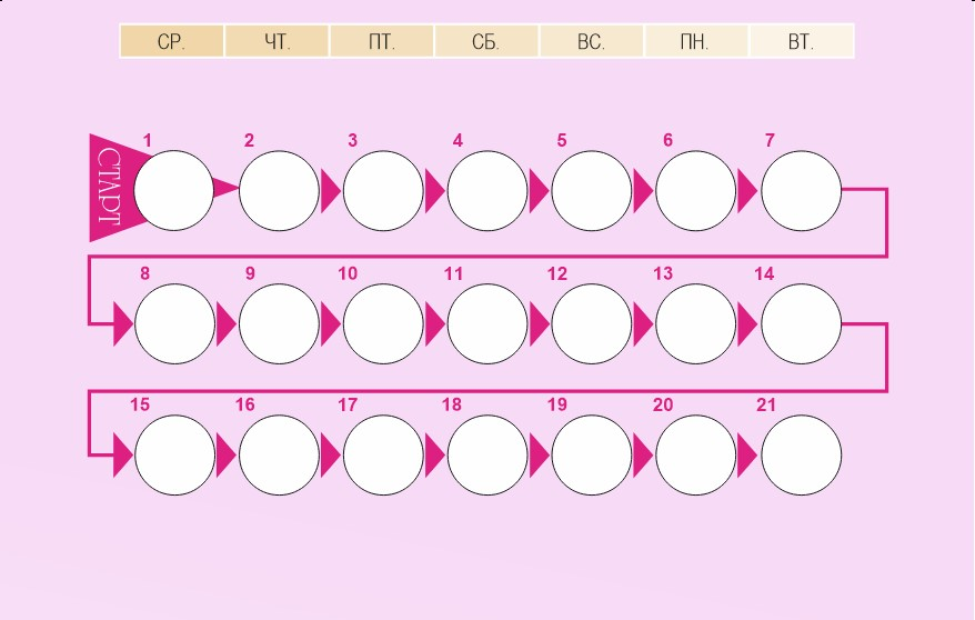 Как правило, через 21 день приема препарата возникает кровотечение «отмены». Иногда, особенно в течение первых месяцев приема препарата, кровотечение «отмены» может отсутствовать. Тем не менее, это не обязательно говорит о снижении контрацептивного эффекта.