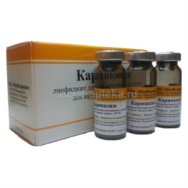 Отзывы о препарате Карипазим лиоф д/приг р-ра д/наруж прим 350ПЕ N10 (Медфлорина)
