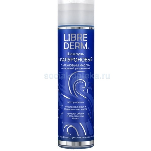 Бессульфатная формула Гиалуронового шампуня Librederm мягко и бережно очищает волосы, не травмируя и предотвращая вымывание краски. Активные компоненты в составе шампуня насыщают волосы живительной влагой, восстанавливают поврежденную структуру и возвращают естественный блеск, защищают волосы от действия агрессивных факторов окружающей среды. Активные компоненты: Гиалуроновая кислота — мощный естественный увлажнитель. Масло арганы — защищает волосы от губительного воздействия ультрафиолета и агрессивных факторов окружающей среды. Алоэ вера гель — сильный увлажнитель, действует против выпадения волос, жирной себореи и перхоти