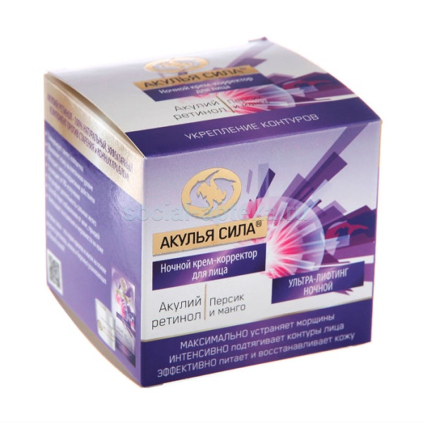 Для максимального эффекта используйте в комплексе с дневным кремом-корректором "Акулий ретинол. Масло ши с фруктовыми кислотами" маской "Акулий ретинол."Банан и ваниль".