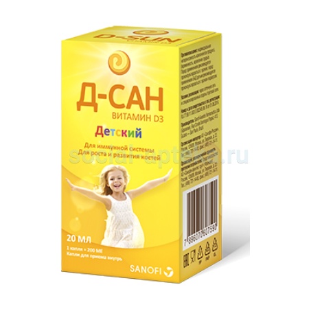 СОСТАВ (НА 1 МЛ): Масло арахиса, масло лимона (ароматизатор), альфа-токоферола ацетат (антиоксидант), холекальциферол (витамин D). Содержание в 1 капле 5 мкг (200 ME)