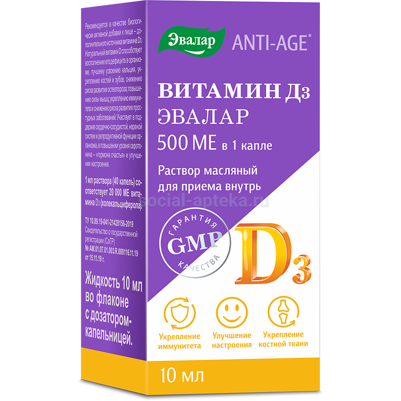 Витамин Д3 500МЕ фл 10мл (Эвалар)