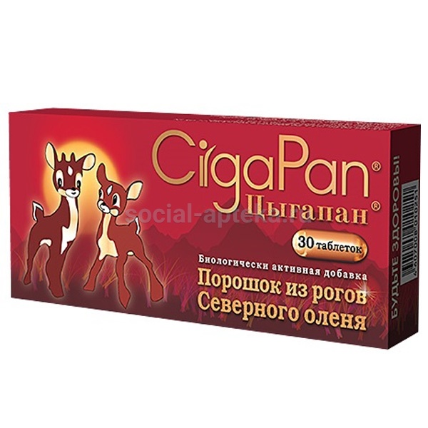 Биологически активная добавка к пище. Не является лекарством.Содержит природный комплекс биологически активных компонентов: большой набор микро- и макроэлементов, витаминов, широкий спектр аминокислот, биологически активные пептиды, фосфорорганические соединения.Цыгапан®:Цыгапан® рекомендован детям с 3-х лет*:Многочисленные научные, доклинические и клинические исследования показали, что Цыгапан® способствует:Применение Цыгапана® одновременно с основной терапией позволяет повысить эффективность лечения различных заболеваний, защитить от побочного действия лекарственных препаратов и сократить сроки лечения. Увеличивает период ремиссии при хронических заболеваниях.Цыгапан® не токсичен, антимутагенен, не вызывает аллергических реакций и побочных эффектов. Оценка потенциальной способности Цыгапана® вызывать токсические эффекты и неблагоприятные отдаленные последствия (мутагенные и др.), показали полную безопасность его применения.В Цыгапане, в отличие от химически синтезированных комплексов, все элементы находятся в естественных, природных связях. 100% натуральный состав.Содержание в мкг/200мг:Макроэлементы и микроэлементы:Элементы необходимые для*:участвующие:оказывающие:Витамины* (мкг/400мг):А (1,64МЕ), В1 (5), В3 (0,1), В6 (1,0), В12 (0,02), РР (1,16), Д (0,17МЕ), Вс (0,005), Н (0,09), мезо-инозит (14,5) -в небольших количествах необходимы для нормальной жизнедеятельности организма, повышения умственной и физической работоспособности; входят в состав важнейших ферментов, регулирующих обменные процессы.С (17,6), Е- токоферолы (6,6) обладают антиоксидантным действием.* - содержатся в низких биологических концентрациях.Белки (не менее 40%), коллаген (38,7%), 20 аминокислот, в том числе незаменимые: треонин, валин, метионин, лейцин, изолейцин, лизин, гистидин в составе пептидов и белков. Аминокислоты - это пластический материал для синтеза всех белковых структур. Используются организмом для собственного роста и восстановления, выработки различных гормонов, ферментов и антител.Общие липиды (0,4%), в том числе фосфолипиды (лецитин-46,5%, сфингомиелин-20,4%, лизофосфатидилхолин- 8,7% и др.) - (28,2мкг/200мг) необходимы для поддержания структурной целостности клеточных мембран; принимают участие в их рецепторной, барьерной и транспортной функциях; участвуют в регуляции липидного обмена. Играют важную роль в метаболическом обмене, а также в процессах детоксикации организма.Нуклеиновые кислоты (РНК + ДНК), нуклеотиды и нуклеозиды – 0,43% - один из важных компонентов интегрального и иммунологического гомеостаза организма. Доказаны также следующие свойства нуклеиновых кислот: радиозащитное, иммуномодулирующие (стимуляция устойчивости организма к различным инфекциям), способность улучшать клеточный состав крови, повышение содержание гемоглобина, понижение возбудимости нервной системы, увеличение мышечной силы. Нуклеотиды и нуклеозиды - отвечают за противораковое и противовоспалительное воздействие.Жирные кислоты (насыщенные и ненасыщенные) необходимы для производства новых клеток и нормального функционирования уже существующих. ПНЖК также необходимы для выработки простагландинов – гормоноподобных веществ, которые регулируют работу всех систем организма, включая сердечно-сосудистую, иммунную, репродуктивную и центральную нервную системы. Общее количество углеводов 