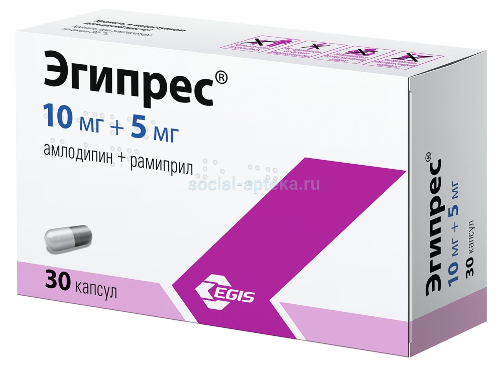 Информация, относящаяся к рамиприлу и амлодипину, применима к препарату Эгипрес.АмлодипинПри лечении АГ амлодипин может сочетаться с приемом тиазидных диуретиков, альфа- и бета-адреноблокаторов, ингибиторов АПФ, нитратов пролонгированного действия, сублингвального нитроглицерина, НПВП, антибиотиков и гипогликемических средств для приема внутрь.При лечении стенокардии амлодипин можно назначать в комбинации с другими антиангинальными средствами, в т.ч. пациентам, рефрактерным к лечению нитратами и/или бета-адреноблокаторами в адекватных дозах.Амлодипин не оказывает какое-либо неблагоприятное влияние на обмен веществ и липиды плазмы крови и может применяться при лечении пациентов с бронхиальной астмой, сахарным диабетом и подагрой.Амлодипин может быть применен и в тех случаях, когда пациент предрасположен к вазоспазму/вазоконстрикции.Пациентам с малой массой тела, невысокого роста и пациентам с выраженным нарушением функций печени может потребоваться меньшая дозировка.Во время лечения необходим контроль массы тела и наблюдение у стоматолога (для предотвращения болезненности, кровоточивости и гиперплазии десен).РамиприлПеред началом лечения рамиприлом необходимо устранить гипонатриемию и гиповолемию. Пациентам, ранее принимавшим диуретики, необходимо их отменить или по крайней мере снизить их дозу за 2–3 дня до начала приема рамиприла (в этом случае следует регулярно контролировать состояние пациентов с ХСН в связи с возможностью развития у них декомпенсации при увеличении ОЦК).После приема первой дозы препарата, а также при увеличении его дозы и/или дозы диуретиков (особенно петлевых), необходимо обеспечить регулярное медицинское наблюдение за пациентом в течение не менее 8 ч для своевременного принятия соответствующих мер в случае чрезмерного снижения АД.Если рамиприл используется впервые или в высокой дозе у пациентов с повышенной активностью РААС, то у них следует регулярно контролировать АД, особенно в начале лечения, т.к. у этих пациентов имеется повышенный риск чрезмерного снижения АД. При злокачественной АГ и СН, в особенности в острой стадии ИМ, лечение с применением рамиприла следует начинать только в условиях стационара.У пациентов с ХСН прием препарата может привести к развитию выраженного снижения АД, которое в ряде случаев сопровождается олигурией или азотемией и редко — развитием острой почечной недостаточности.Следует соблюдать осторожность при лечении пожилых пациентов, т.к. они могут быть особенно чувствительны к ингибиторам АПФ; в начальной фазе лечения рекомендуется контролировать показатели функции почек.У пациентов, для которых снижение АД может представлять определенный риск (например пациенты с атеросклеротическим сужением коронарных или мозговых артерий), лечение должно начинаться под строгим медицинским наблюдением.Следует соблюдать осторожность при физической нагрузке и/или жаркой погоде из-за риска повышенного потоотделения и дегидратации с развитием артериальной гипотензии вследствие уменьшения ОЦК и снижения содержания натрия в крови.Во время лечения не рекомендуется употреблять алкоголь.Преходящая артериальная гипотензия не является противопоказанием для продолжения лечения после стабилизации АД. В случае повторного возникновения выраженной артериал