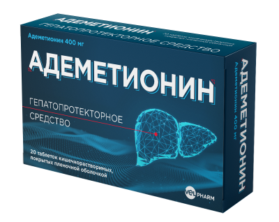 Адеметионин (S-аденозил-L-метионин) - это аминокислота естественного происхождения, которая присутствует практически во всех тканях и биологических жидкостях в организме. Наибольшая концентрация адеметионина отмечена в печени и мозге. Адеметионин является производным серосодержащей аминокислоты-метионина. Выполняет ключевую роль в метаболических процессах организма, принимает участие в важных биохимических реакциях. Участвует в синтезе фосфолипидов клеточных мембран, нейротрансмиттеров, нуклеиновых кислот, белков, гормонов и др. Адеметионин является предшественником цистеина, таурина, глутатиона (обеспечивая окислительно-восстановительный механизм клеточной детоксикации), коэнзима А (включается в биохимические реакции цикла трикарбоновых кислот и восполняет энергетический потенциал клетки). Повышает содержание глутамина в печени, цистеина и таурина в плазме; снижает содержание метионина в сыворотке, нормализуя метаболические реакции в печени. Опосредованно участвует в стимуляции регенерации и пролиферации клеток печени, что уменьшает риск фиброзирования. Адеметионин нормализует синтез эндогенного фосфатидилхолина в гепатоцитах, что повышает текучесть и поляризацию мембран. Это улучшает функцию ассоциированных с мембранами гепатоцитов транспортных систем желчных кислот и способствует пассажу желчных кислот в желчевыводящие пути. Эффективен при внутридольковом варианте холестаза (нарушение синтеза и тока желчи). Адеметионин снижает токсичность желчных кислот в клетках печени. У пациентов с диффузными заболеваниями печени (цирроз, гепатит) адеметионин снижает выраженность кожного зуда и способствует улучшению биохимических показателей крови, в т.ч. концентрации прямого билирубина, активности щелочной фосфатазы, аминотрансфераз и др. Желчегонный и гепатопротекторный эффект сохраняется до 3 месяцев после прекращения лечения.