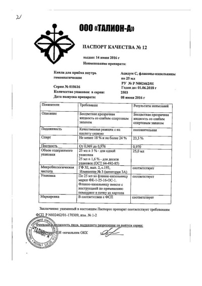 Сертификаты Ацидум
