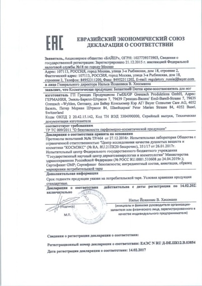 1 г мази содержит. Действующее вещество: декспантенол – 50 мг. Вспомогательные вещества: протегин Х 50 мг, цетиловый спирт 18 мг, стеариловый спирт 12 мг, воск пчелиный белый 40 мг, ланолин 250 мг, парафин мягкий белый 130 мг, масло миндальное 50 мг, парафин жидкий 150 мг, вода очищенная до 1000 мг.