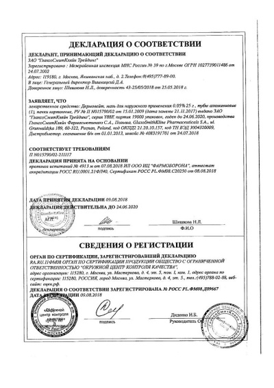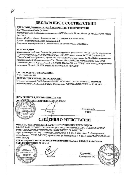 ГКС для наружного применения. Предупреждает краевое скопление нейтрофилов, уменьшает воспалительную экссудацию и продукцию лимфокинов, тормозит миграцию макрофагов, снижает интенсивность процессов инфильтрации и грануляции, оказывает местный противовоспалительный, противозудный, противоаллергический антиэкссудативный эффекты.