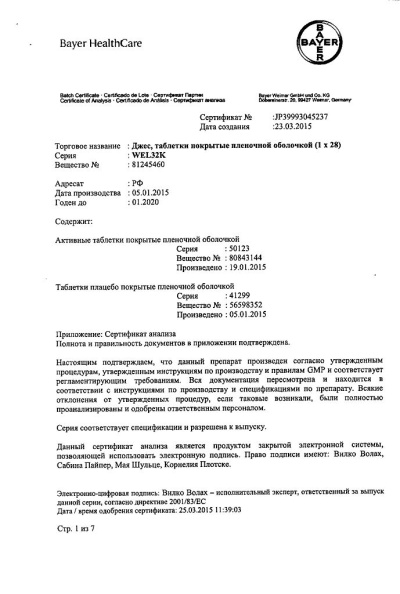 У некоторых женщин во время перерыва в приеме содержащих гормоны (светло-розовых) таблеток может не развиться кровотечение "отмены". Если препарат принимался согласно указаниям, маловероятно, что женщина беременна. Тем не менее, если до этого препарат принимался нерегулярно, или если отсутствуют подряд два кровотечения "отмены", до продолжения приема препарата должна быть исключена беременность. Особое значение это имеет для женщин, принимающих сопутствующие препараты с тератогенным действием. И хотя наступление беременности на фоне регулярного приема препарата Джес® маловероятно, при малейшем подозрении на беременность должен быть выполнен тест на беременность.