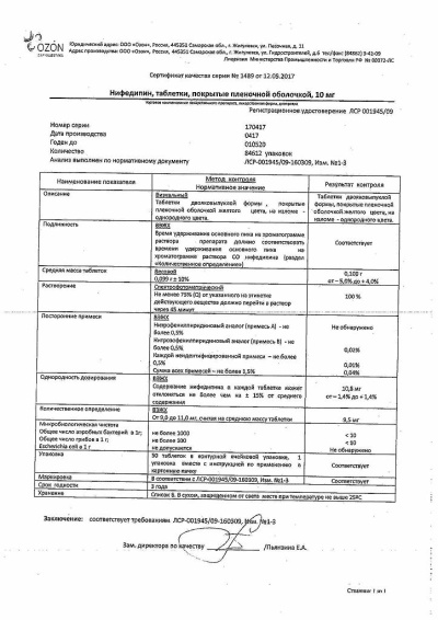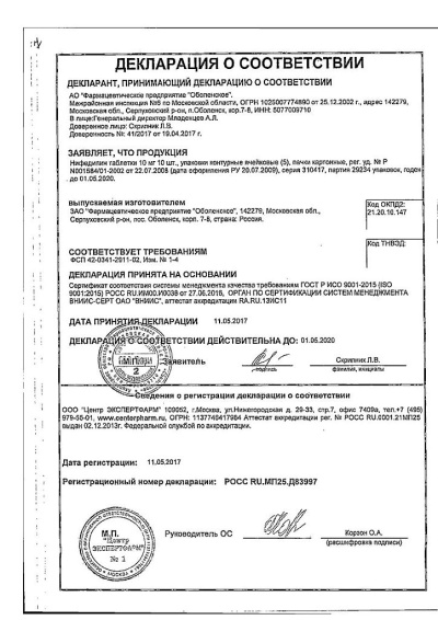 При артериальной гипертензии нифедипин снижает артериальное давление (АД) за счет периферической вазодилатации и снижения ОПСС. Нифедипин при приеме один раз в сутки обеспечивает 24-часовой контроль повышенного АД. У пациентов с нормальным АД нифедипин не оказывает на него влияния либо влияет на него в незначительной степени.