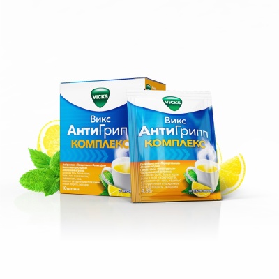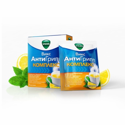 Боритесь с симптомами простуды! Викс АнтиГрипп Комплекс - единственное¹ средство, облегчающее одновременно 6 симптомов простуды и гриппа, включая кашель²