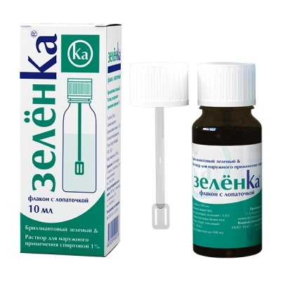 Зеленка - антисептический препарат при ссадинах, порезах, нарушении целостности кожных покровов, свежих послеоперационных и посттравматических рубцах, мейбомитах, блефаритах, пиодермии